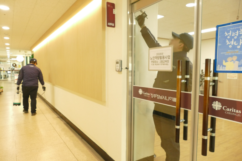 이번 방역은 2025년 12월 22일 오후 시간에 두 명의 작업자가 방문하여 청남 시니어 클럽의 내부와 외부 등 역할을 나누어 진행하였어요.